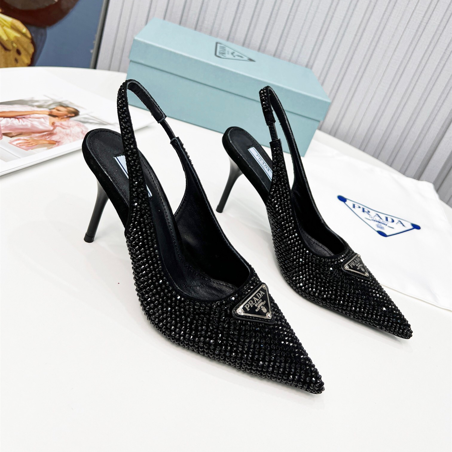 Prada Satin Pumps with Crystals Size 35-41 9-Color