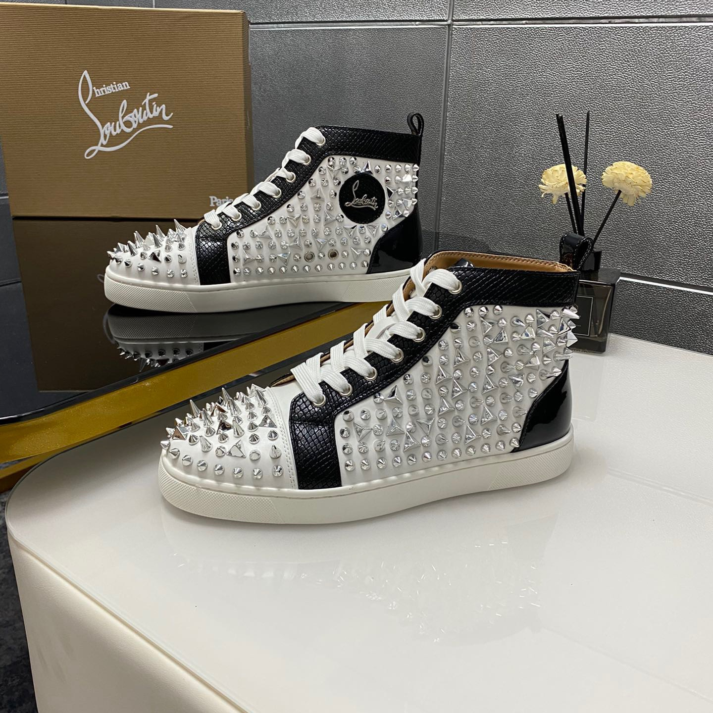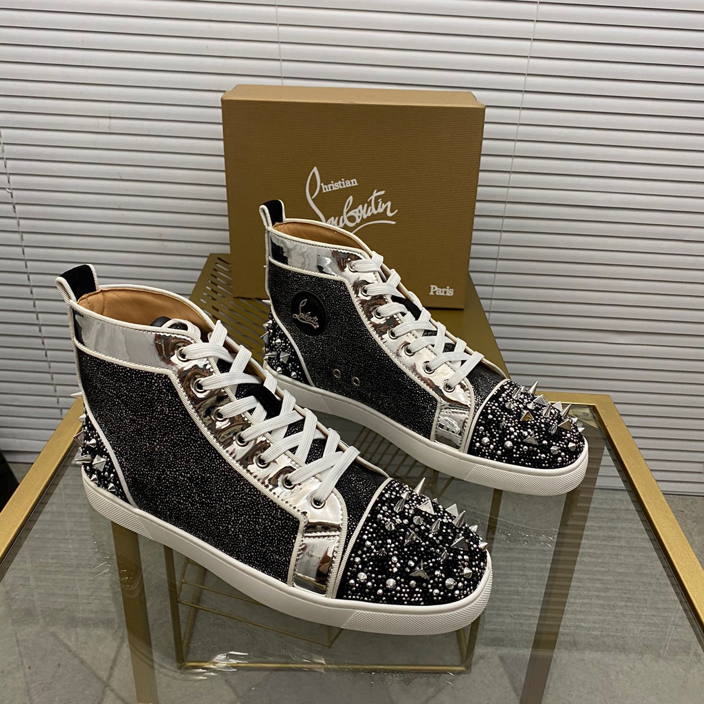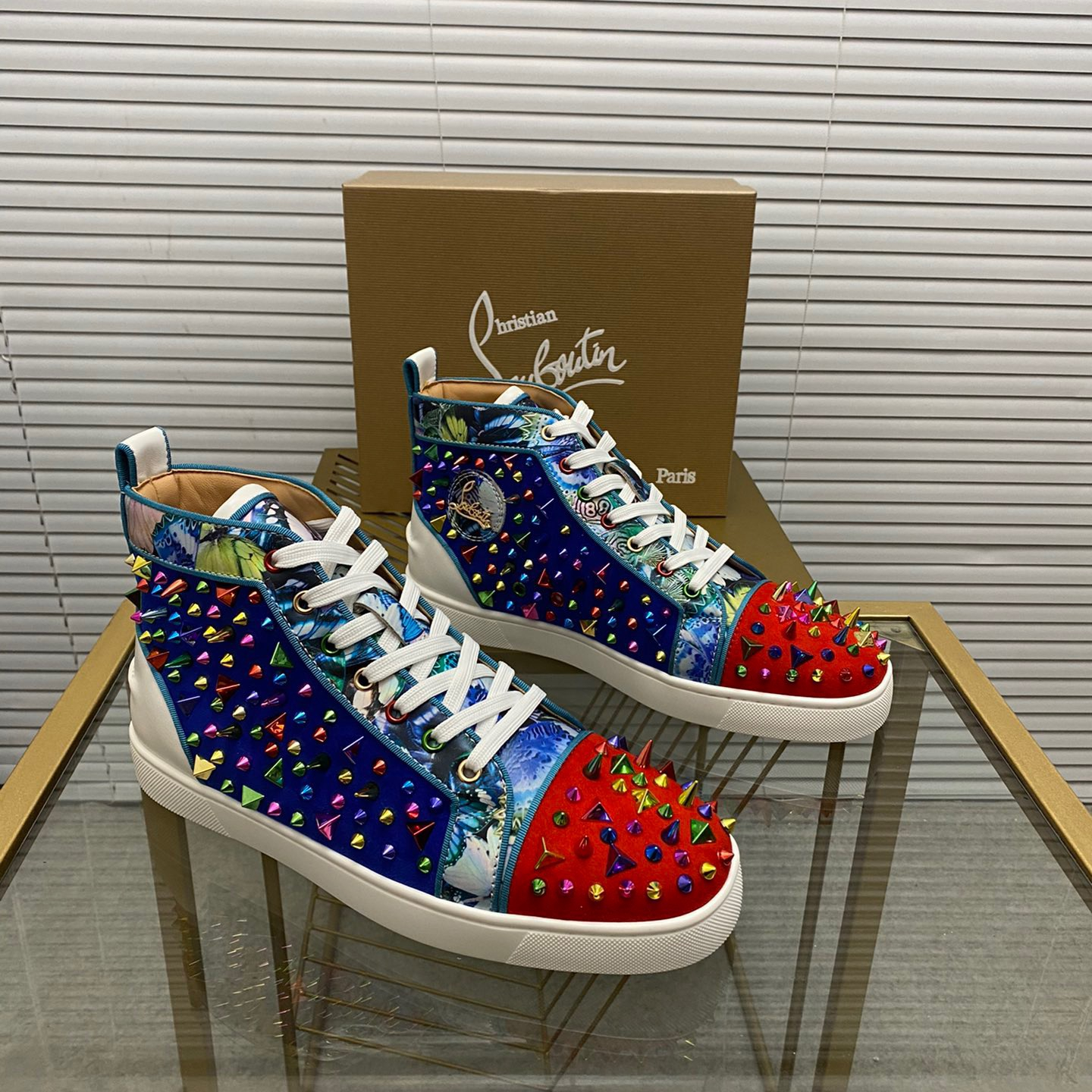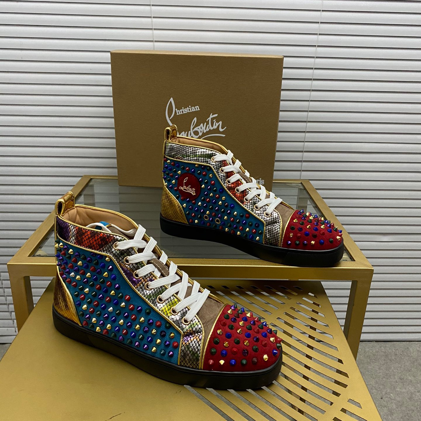 Christian Louboutin Louis Spikes High-Top Sneaker Size 36-46 10-Color